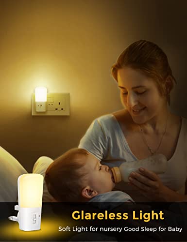 - Dusk to Dawn: With dusk to dawn photocell sensor, this plug in night light will auto on at dusk and auto off at dawn. Please do not put two night lights together, it will affect the light sensor function.