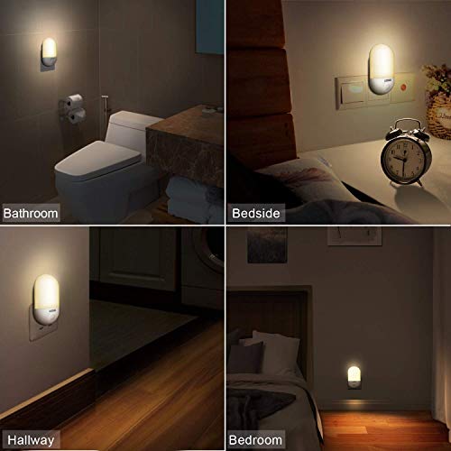 - Auto On/Off with Light Sensor: With smart dusk to dawn sensor, the night light, the baby night light switches on automatically at dusk and automatically off at sunrise.
