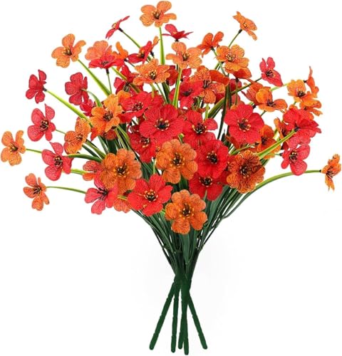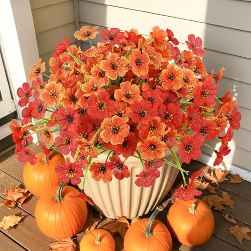 - UV Resistant and Care Free: These artificial fall flowers shrubs are made of high-quality plastic. Artificial flowers for outdoors are UV resistant and never fade, can against rain, wind and other bad weather, suitable for both indoor and outdoor decoration, easy to take care of, always keep fresh. It easy for busy people to enjoy beautiful flowers