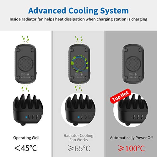 - [Safe Charger Protects Every Moment] USB charger always warm up when charging multiple electronics, which is dangerous if it’s temperaure keeps rising. NTONPOWER multi-iPad charging station has three ventilation holes and a cooling fan on the bottom. During charging process, heat will be continuously vented. If temperature reaches up to 65℃, cooling fan will be turned on and fast cooling.
