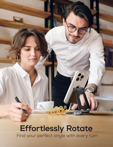 - 360° Rotatable Freedom: This phone stand offers a full 360° rotation, allowing you to effortlessly adjust the viewing angle to your preference. Enjoy hands-unoccupied comfort whether you're watching videos, video calling, or sharing your screen.