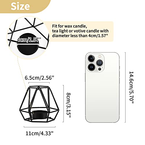 - Details: Base has a solid metal bottom for placement of a wax or flamless led tea light or votive candle. These on trend tea light holders are made of all metal and anti rust.
