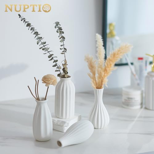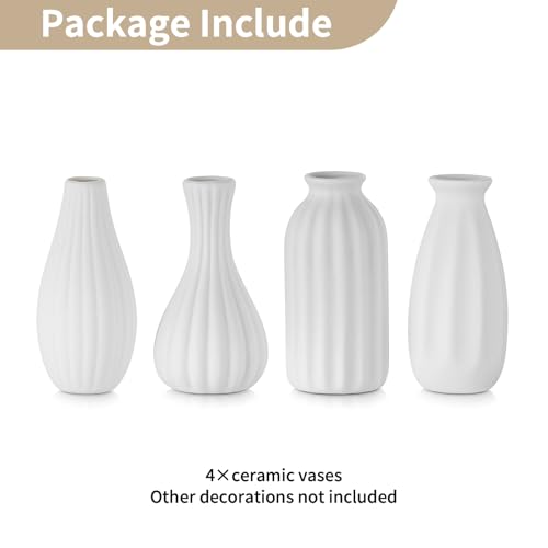 - 4-Piece Styling Set: Curate your perfect display with these expertly crafted ceramic vases. Cluster them as a striking centrepiece or scatter individually to elevate your weddings, parties, birthdays, anniversary decorations. Their coordinated yet distinct designs create harmony while allowing creative flexibility.