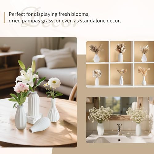 - Elevate Your Home Decor: Featuring a modern minimalist style with ribbed finishes, these small vases effortlessly complement any home decor. Perfect for dining tables, shelves, windowsills, bookshelf, coffee table, bathroom, fireplace and more. Their timeless aesthetic enhances any space with understated elegance.