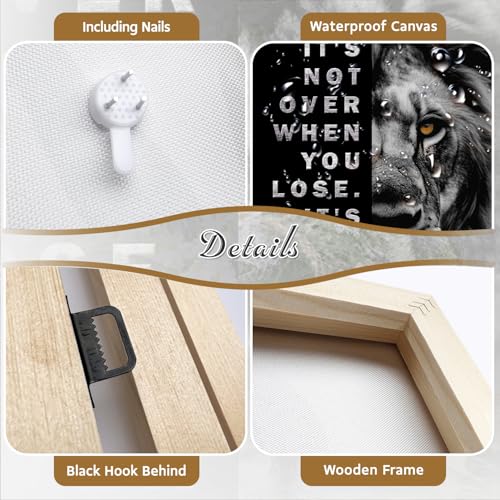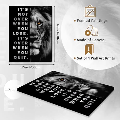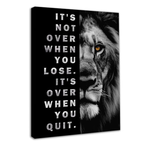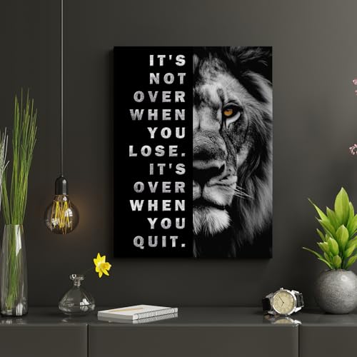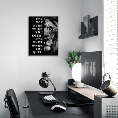 - Unique Design: This motivational lion poster uses the classic black and white colour scheme and 'It’s not over when you lose it’s over when you quit' will encourage you every time you see it.