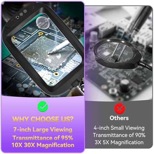 - 【10X 30X HD Magnification】 This lighted magnifier features high-quality lenses providing 10x and 30x magnification. Its square optical-grade lens delivers clear image sharpness while reducing edge distortion common with traditional round lenses. This makes it perfect for detailed tasks like sewing, embroidery, cross-stitch, jewellery making, repairs, and more.