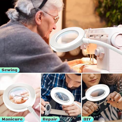 - A DUAL-USE: It can satisfy the requirements from different people, can be used as a desk lamp or magnifying glass to switch flexibly. It can be used for daily reading, circuit boards, electronic component soldering repairs, sewing, needle point, diamond painting, model making, crafting, workbench, map enlargement, jewelry appreciation, manual embroidery etc.