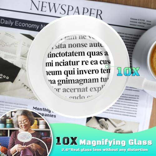 - 10X Magnification & Optical Lens: The lens uses thickened optical glass, you will get a clearer world from broad vision easily. Abrasion resistance and effective protection against scratching the lens, providing the best reading and working environment, reducing eye fatigue.