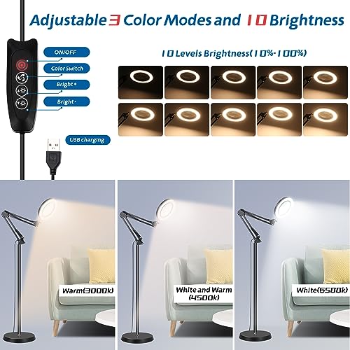 - 【Upgraded 3-in-1 Magnifying Floor Lamp with Clip】The magnifying glass has 3 convenient mounting options for tool-less installation. Simply insert the light arm directly into the metal clip/base to secure the magnifier. The floor magnifier can be freely combined into two different heights. The base is weighted, which stays well in place and doesn't tip at all. You can also use it as a table lamp with a clip to secure it to a table. The maximum clip distance is up to 2.4 inches.
