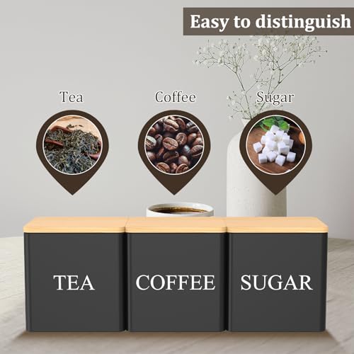 - Enduring Texture: This set includes 1 tea canister, 1 coffee canister and 1 sugar canister, all crafted from metal with bamboo lids, sturdy and effortless to clean, add elegance to your kitchen countertop