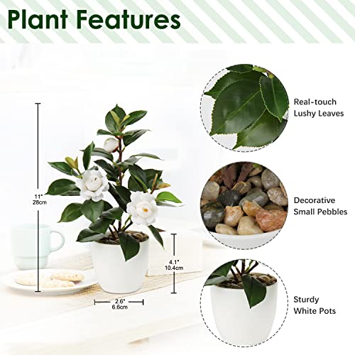 - Material – Artificial camellia plant leaves are made of non-toxic and durable PVC plastic, comes with white plastic pots. Oairse artificial plants indoors in pots in 3 type to meet your decoration needs: white, pink or without flower. These small artificial plants height 28cm/11inch, ideal for displaying on the table.