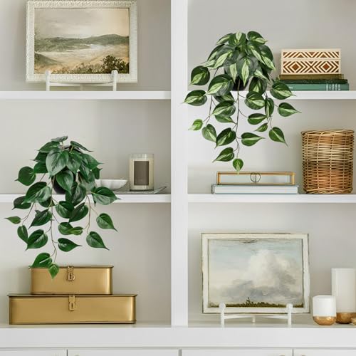 - Artificial Plants Indoor – This artificial pothos plant set include green pothos and golden potho which is shaped with bushy green heart-shaped leaves, giving it a full and natural look. The pre-filled stone makes it look more realistic. With vivid color, clear texture on the leaves, our artificial desk plant reflects a real touch feeling when you touch them.