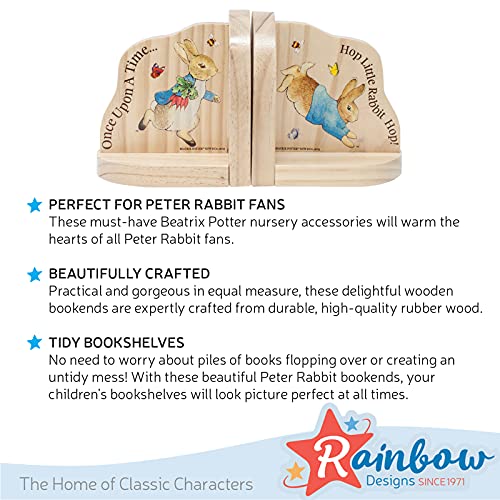 - PERFECT FOR PETER RABBIT FANS: These must-have Beatrix Potter nursery accessories will warm the hearts of all Peter Rabbit fans. Whether standing proud between Beatrix Potter books or other titles, these children's bookends are sure to delight little bookworms!