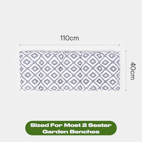 - Bench cushions 2 seater sized at 110cm x 40cm, perfect for two adults to sit on the outdoor bench. Water resistant bench seat pads outdoor offer protection against the weather and rainy days.