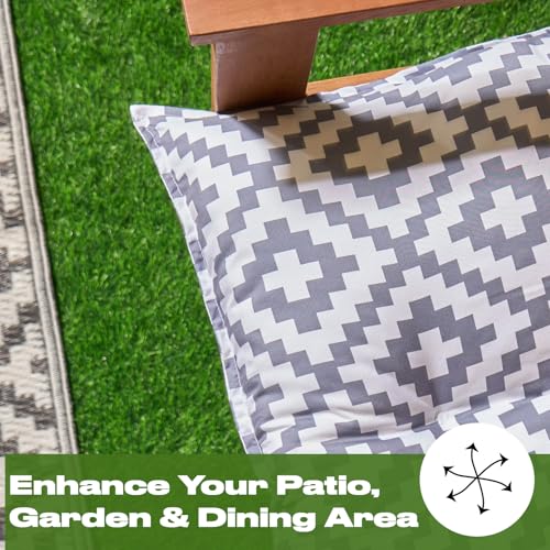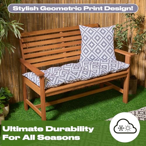 - Geometric grey outdoor seat pads for outdoor garden furniture adds style and personality to your outdoor or indoor benches. Grey padded button bench cushion with squared geometric effect adds a modern and stylish touch to outdoor seating.