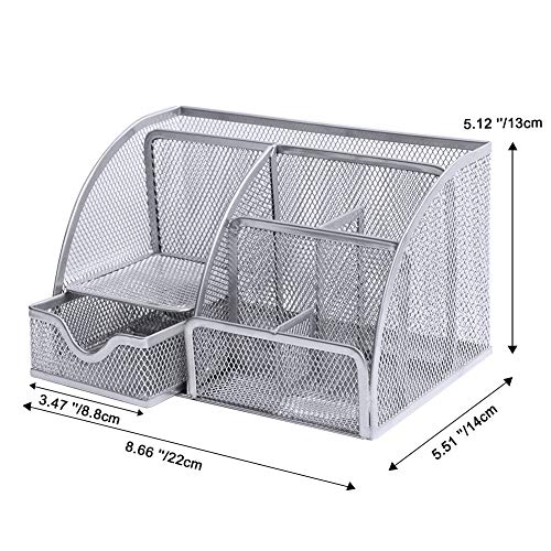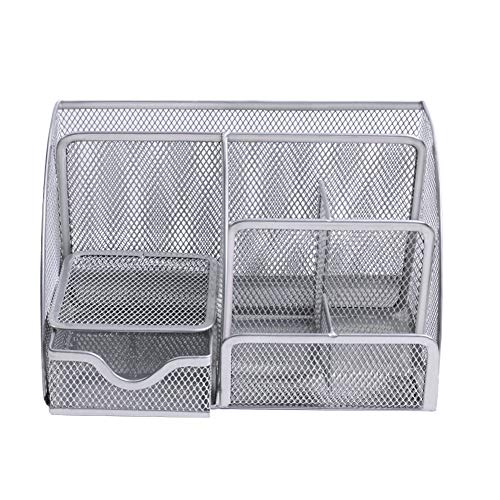 - Durable & High Quality: This silver desk organiser is made of high quality scratch resistant steel wire metal mesh, strong and durable, stable quality,no assembly required, not easy to scratch.Through desktop organizer with drawer to keep pencils, documents, letters, vouchers, cards and coupons neat and orderly.
