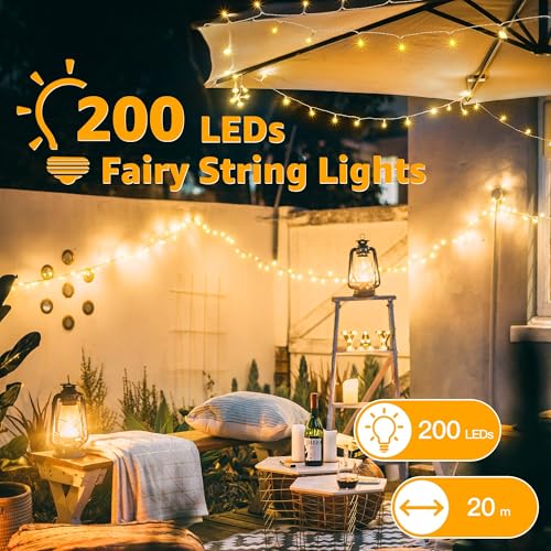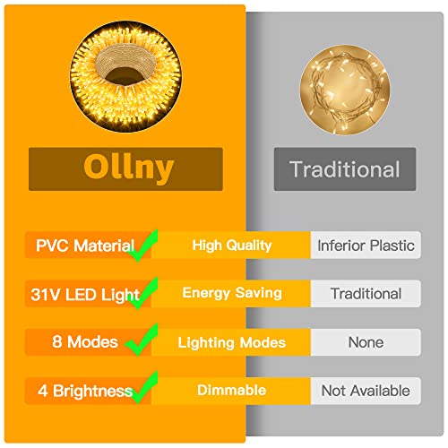 - 200 Bright LEDs Fairy Lights: With a 3 m power cable, Ollny 20 m warm white fairy light is long enough for outdoor and indoor decorations; Decorating gardens, gazebos, houses, bedrooms, stairs, and holiday events; Add festive charm to your space