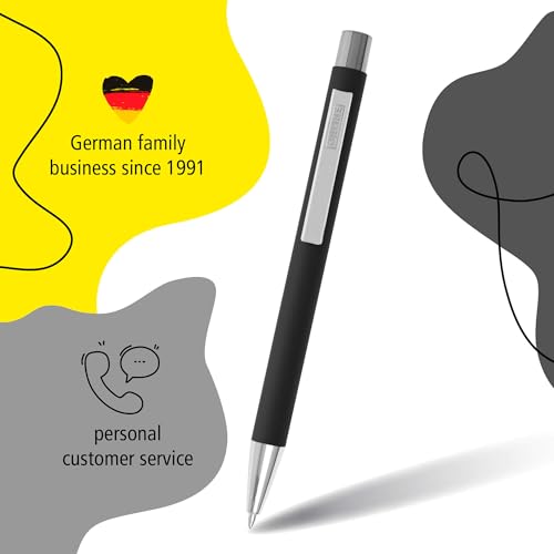 - Elegant feel: the perfect pen for business and office. The aluminium with a refined surface with soft touch feeling is high quality and sits particularly well in the hand. A sturdy metal clip fixes the pen exactly where you need it.