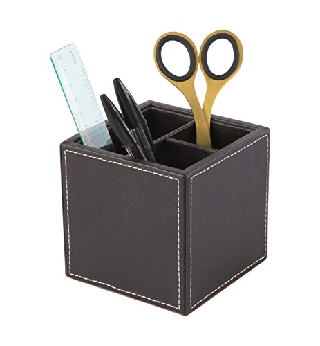 - Stylish and Functional Design: Classically designed square pen pot with three compartments for neatly storing pens, pencils, rulers, or even a smartphone—ideal for keeping desks tidy in both home and office environments.