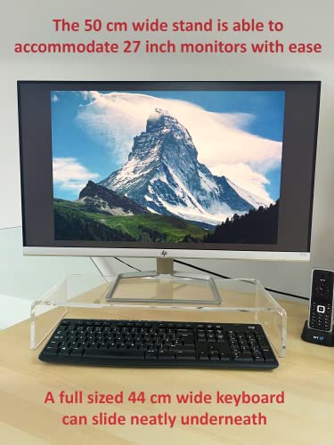 - Stylish and Functional Design: Sleek acrylic monitor stand designed to elevate screens for improved posture and reduced neck strain—ideal for modern office or home workspaces. No assembly required and compatible with most monitors and TVs.
