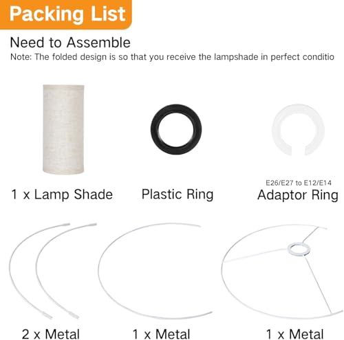 - Self Assembly Required: Our lampshade has a folding design that makes it very easy to install and does not require the use of any tools. All you need to do is fix the lampshade around the metal rings by fitting it into the clips. It’s simple to set up within minutes.(Note: The folded design is so that you receive the lampshade in perfect condition)