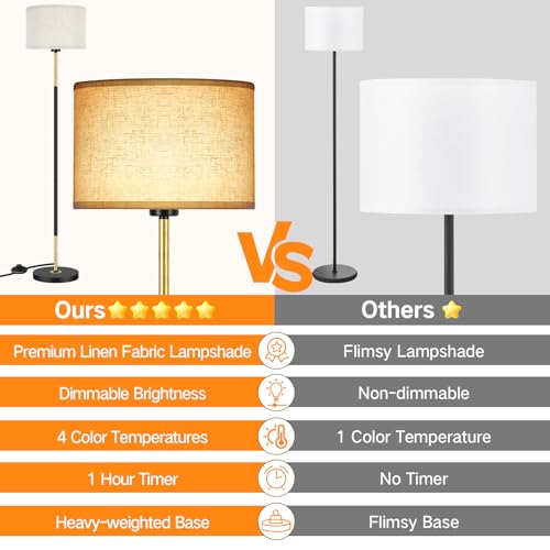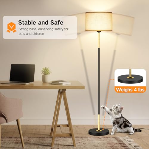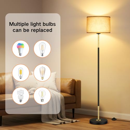 - Modern Simple Design & Wide Application: Our floor lamp features a minimalist design and is accompanied by an elegant linen lampshade, providing you with the desired soft and warm lighting. Its black and gold pole design enhances texture and blends well with a variety of decorative styles. It is not just a practical lighting fixture but also a decoration that enhances the ambiance of home, suitable for living room, bedroom, study, office, kids room, increasing more fascination to your space.