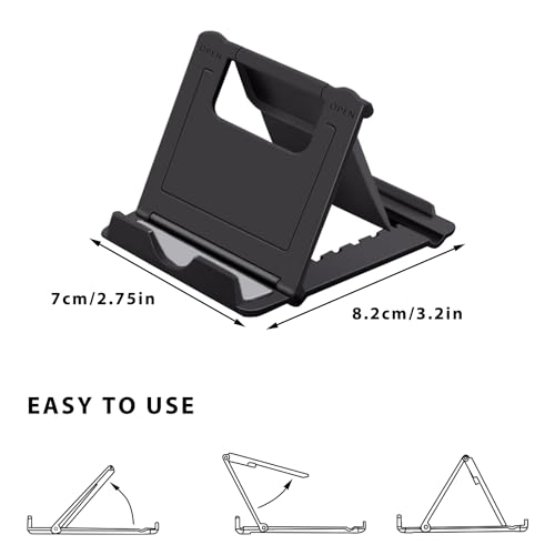 - Portable and Light-weighted: Comes 2 pack phone stand. Our mobile phone stand holder is made of high-quality ABS material. With small size of 70x82mm, our mobile phone holder for desk is easy to fold and slip into your pocket. A best gift cell phone stand for desk, travel, home and office.