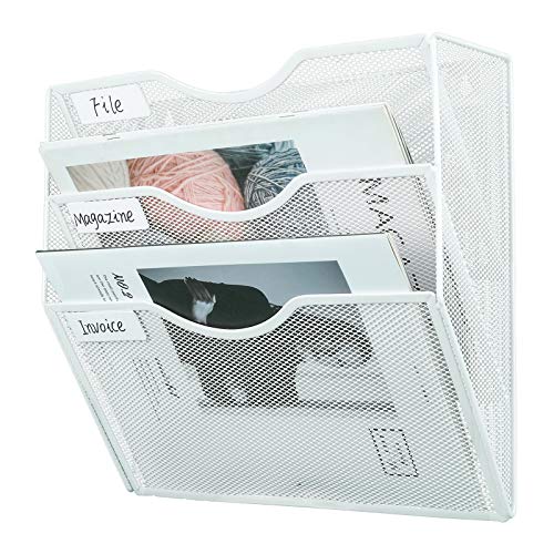 - ▶Multipurpose and Space-saving Design.Wall mounted document holder has 3 separate oblique slots, which is great for sorting files, documents, magazines, literature, catalogs, mail, brochures, manilla envelopes and notebooks,paper storage.Take full advantage of your vertical space and keep your desktop empty and tidy