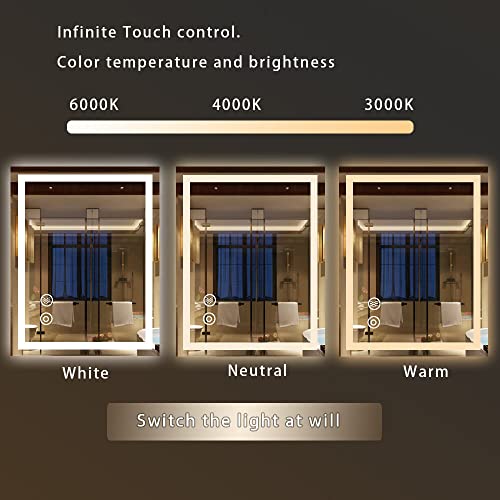 - Energy-efficient: The mirror uses LED lights, which are energy-efficient and long-lasting,3 color temperatures (3000K warm light/ 4500K natural light/ 6000K white light) with a separate touch switch, tailored to your makeup application needs.