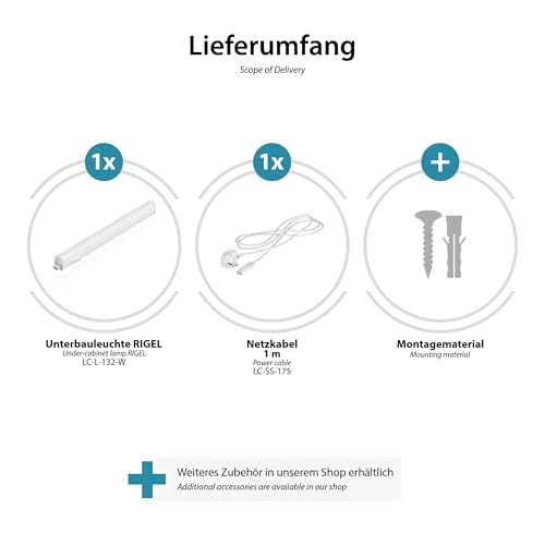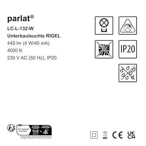 - [Economical LED technology] – This under-cabinet light is the perfect choice if you are looking for an energy-efficient solution. Thanks to the intelligent LED technology, the under-cabinet light is particularly energy-efficient and long-lasting (445 lm with a power consumption of only 4 W)