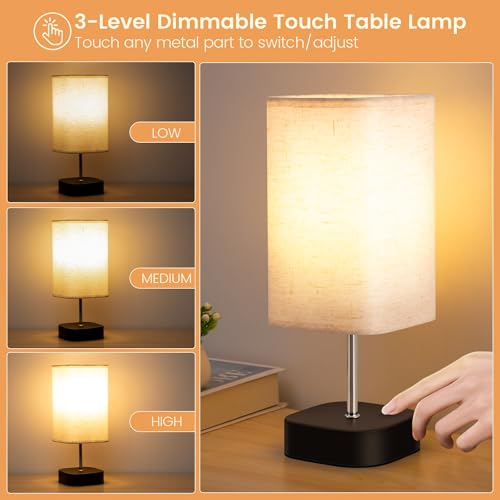 - 【3-Level Dimmable Touch Control】 The bedside lamp has 3 levels of brightness settings (30%, 70% and 100%) with touch control by tapping the metal base or lamp pole, letting you have easier and more energy-efficient brightness choices. This bedside table lamp provides comfortable warm white light protects your eyes and makes you feel relaxed and cozy.