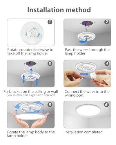 - With a powerful remote control :The remote control is powered by 2 AAA batteries (not included), with the help of the included remote control, you can easily choose the color temperature from 3000K-6000K, adjust the light brightness 10% -100%, RGB colors / RGB cycle mode, 60 seconds timer off function, also offers a night light mode which is more convenient for the elderly and children to use. Compared to normal bathroom ceiling lights, this ceiling light will have more autonomy