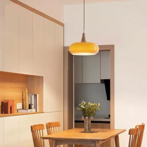 - [Chandeliers with unique lighting effect] This farmhouse glass chandelier can show a beautiful light effect. mid century modern pendant light fixtures orange glass lamp are very suitable for kitchen islands, dining rooms, cafes, corridors, bedrooms, living rooms,