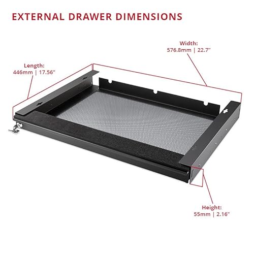 - Perfect space-saving solution: Whether you’re using a laptop at home, in an office or at school, this under-desk tray will keep it conveniently stored. It is the perfect under desk storage, designed for 550mm/20-inch laptops or smaller notebooks, and it has a height of 45.6mm/1.8 inches.