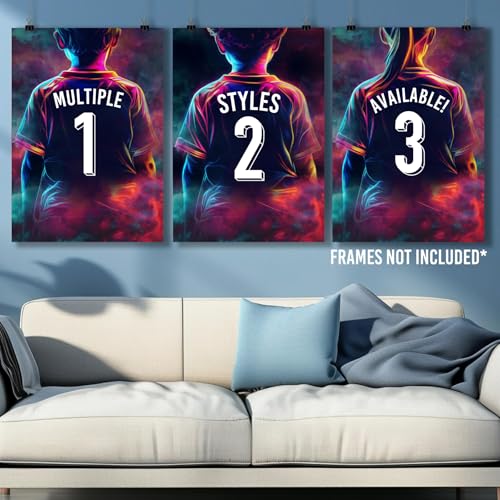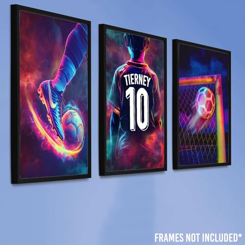 - Trio of Prints: Three stylish neon football poster prints for decorating a boy's bedroom. (Frame not included)