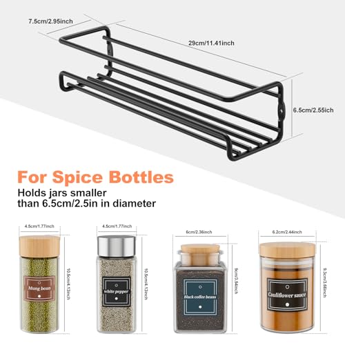 - Durable and easy to clean: the spice racks are made of stainless steel and painted black, which makes them rust and corrosion resistant in the kitchen, making them more durable than plastic or wooden shelves. A damp cloth and a little detergent are enough to remove a dirt or grease film or even spice residue from the spice rack.