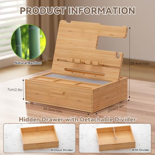 - Organizing Made Easy: Dock your phone and declutter your everyday essentials with Pezin & Hulin nightstand organizer, which is made of solid bamboo for a minimalist, rustic style that will last for years to come. Features a hidden drawer with detachable partition, you can DIY it to 1/2 compartments, ideal for organizing wallets and gadgets, keeping them neatly stored