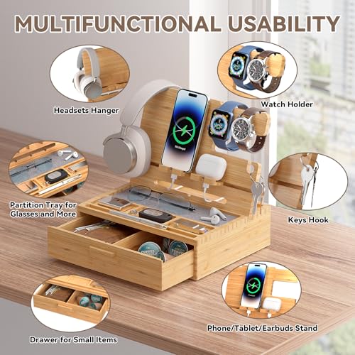 - Easy to Assemble: No tools required, with a 2-step setup, the charge dock station is instantly assembled and ready to use. You can use it to organize your jewelry, watches, wallets, keys, mobile phones, headphones and any other daily essentials, keeping the desktop tidy and orderly. Suitable for a variety of scenes, such as cloakroom, bedroom, living room, dressing table, etc
