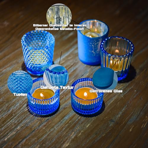 - 🕯️【Versatile Designs, Captivating Effects】 Experience a variety of mesmerizing light effects with PhilaeEC Glass Candle Holders Set of 5. The polka dot pearl design creates a dotted pattern of light, the striped holder diffuses light in a linear fashion, and the hollowed-out starry sky cup provides a celestial ambiance.