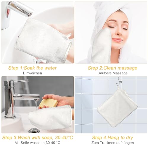 - Size:13×20 cm, perfect to wear on your hands or as a traditional face towel. Made of high-quality materials, face and body mitt set is very soft and delicate and does not irritate the skin, great for children and adults. Choosing white towels can make your bathroom more stylish and modern