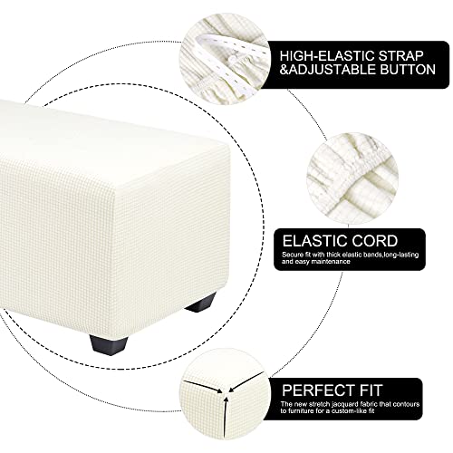 PiccoCasa High Stretch Ottoman Cover with Elastic Bottom, Soft Slipcover Jacquard Fabric Small Checks Rectangle Storage Stool Cover Furniture Covers Seasalt Small