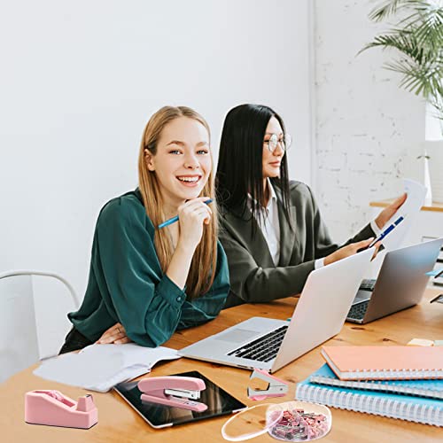 - Quality Material- Stapler and tape dispenser set made of high-quality plastic material, which is reliable, clear and bright; Pink desk accessories is smooth and comfortable to touch, not easy to break or deform, durable, elegant and beautiful,attach Bright colors easy to find,very suitable for daily work and study life.