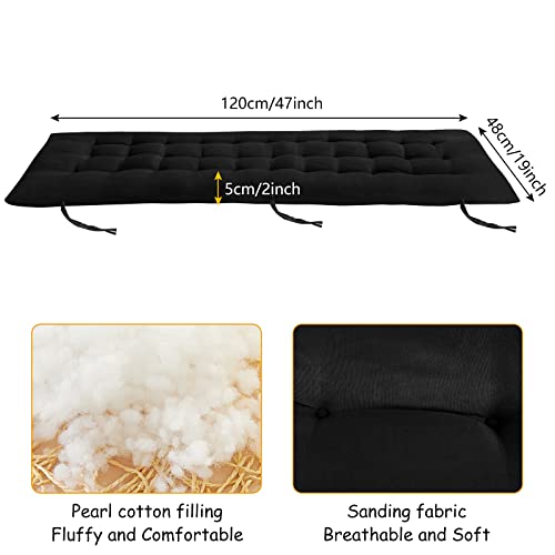 - Black cushion pad size: 120cmx48cmx5cm, suitable for 2 or 3 seater. Great patio bench cushion, swing cushion, wicker seat cushion, lounger bench cushion, dining bench cushion, patio chair cushion