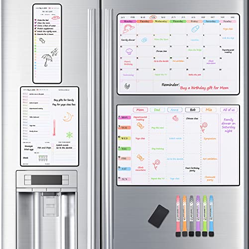 - 【Multipurpose Use】POPRUN Dry Erase Fridge Whiteboards are perfect for families as a monthly planner, weekly planner, daily planner, to do list, meal planner, tasks tracker, family chore chart, cleaning rota chart, memo board, reminder board, fitness schedule, autistic planner board. This is an ideal Christmas gift for busy family. This magnetic whiteboard set makes it very easy for the whole family to know important events and dates, and never miss any important appointments or dates again!