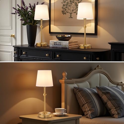 - 【Vintage Design】Standing at 16.7 inches tall and 6 inches wide, the table lamp is a modest size that won't take up much space anywhere, yet provides plenty of illumination light. The lamp body is made of metal, durable. The surface is electroplated, with a smooth and textured finish. The lampshade is made of linen, which is more elegant and textured under the soft light.Design and aesthetics complement your home decor.