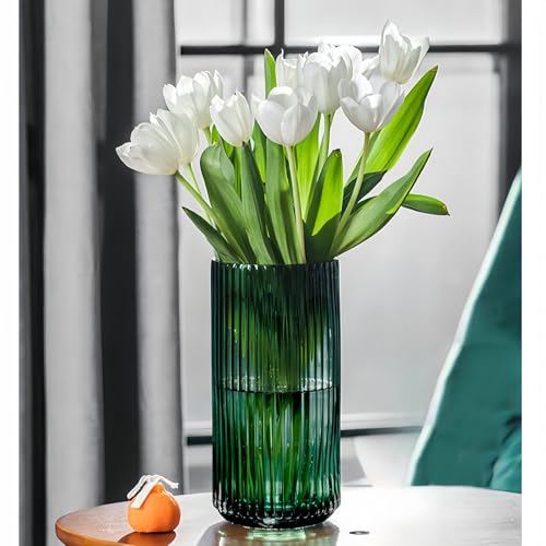 - Glass Vase for Flowers: Large vases for flowers Featuring a tall, elegant design with a wide opening, this clear vase is perfect for long-stemmed blooms like roses, lilies, and gladioli, adding structure and style to any space, Modern Glass Vase, Ribbed Glass Vase.