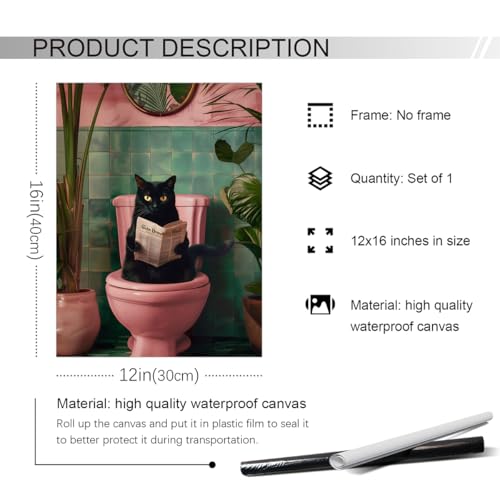 - Funky Bathroom Cat Canvas Wall Art: A playful cat-themed canvas that brings a funky, lighthearted vibe to your bathroom decor. The bold colors and humorous design make this piece a conversation starter for any guest