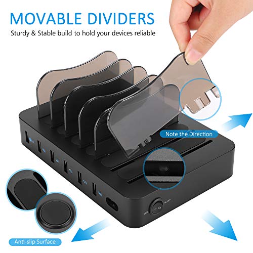 - Neat & Organized — NO more cluttered cables, NO bunch of chargers, everything in one place, clean and organized. One charging dock can keep all your devices in one place, effectively keeping your desktop in tidy. The charging dock also can be worked as phone or tablet support holder. The baffles can be removed if you need.