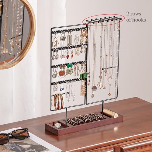 - 144 Earring Holes – Can hold a dozen earrings along with several necklaces and bracelets, so much easier and faster to see what you have, access everything very easily unlike jewelry box; No more tangled necklaces or hunting for a matching earring
