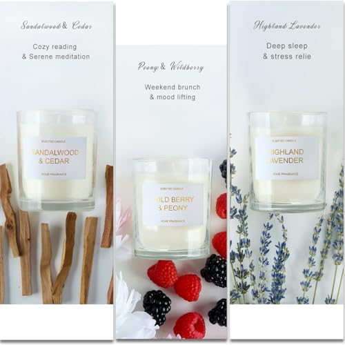 - Three Premium Fragrances —Experience the calming essence of Highland Lavender, the fruity elegance of Peony & Berries, and the grounding warmth of Sandalwood. Each scent has been carefully curated and blended to deliver a wonderful aroma experience.